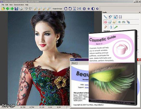 Cosmetic Guide - программа для удаления косметических дефектов непосредственно на фотографиях. Поможет разгладить морщины, отеки или припухлости; удалить родимые пятна и бородавки; избавиться от второго подбородка; отбелить зубы. В программе есть демонстрационные примеры, показывающие работу с инструментами.