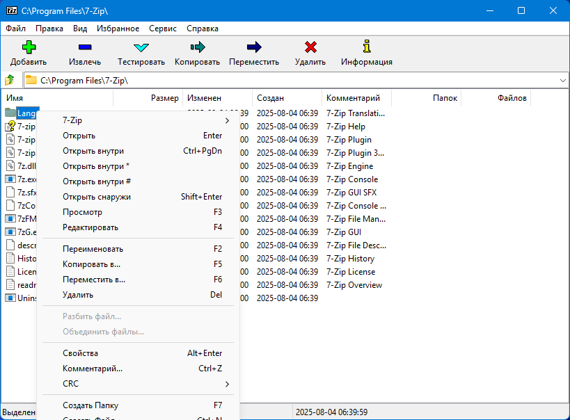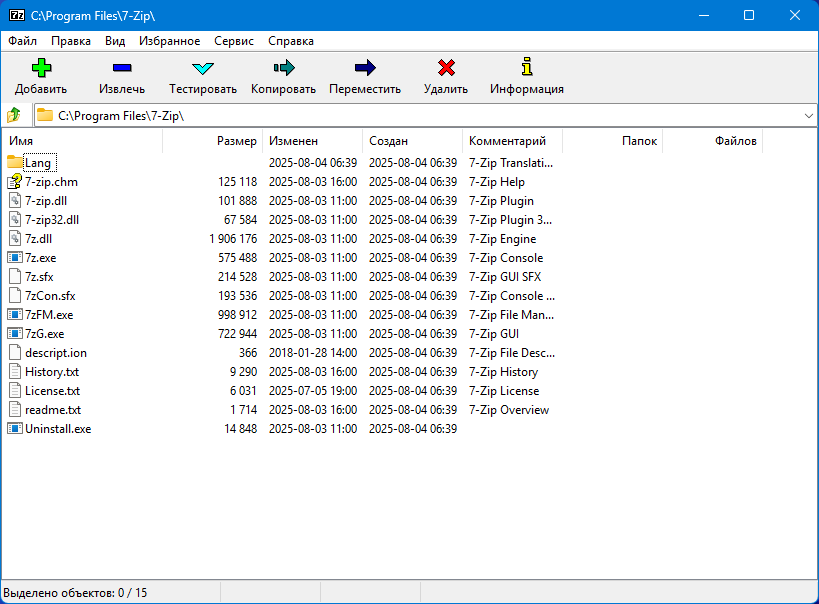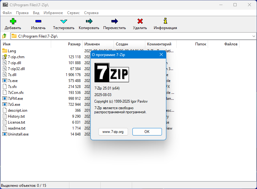Версия программы: 25.01 Официальный сайт:7-Zip Язык интерфейса: Русский, Английский, другие Лечение: не требуется Системные требования: Windows 11 / 10 / 8 / 7 / Vista / XP / 2012 / 2008 / 2003 / 2000 / NT (x86/x64)