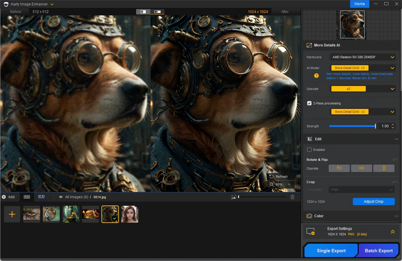 Aiarty Image Enhancer особенно полезен для работы с изображениями низкого качества, включая AI-генерируемые изображения, фотографии и иллюстрации. Он позволяет улучшать детали кожи, волос, тканей и других текстур, делая их более реалистичными и четкими. Программа поддерживает пакетную обработку изображений, что экономит время при работе с большим количеством данных.