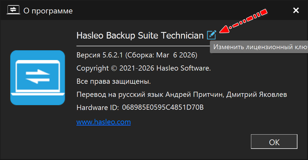 Установить ПО. Заблокируйте попытки приложения выходить на сервер с помощью вашего личного брандмауэра или добавьте следующую запись в файл hosts: 127.0.0.1www.easyuefi.com Для версии Technician в файлах Backup Suite.ini, которые находятся в папках C:\Program Files\Hasleo\Hasleo Backup Suite\bin\ и C:\Program Files\Hasleo\Hasleo Backup Suite\bin\WINPE\Program Files\Hasleo Backup Suite\bin\ надо изменить EditionType=0 -> EditionType=44. Далее по последовательности, описанной на скриншотах: