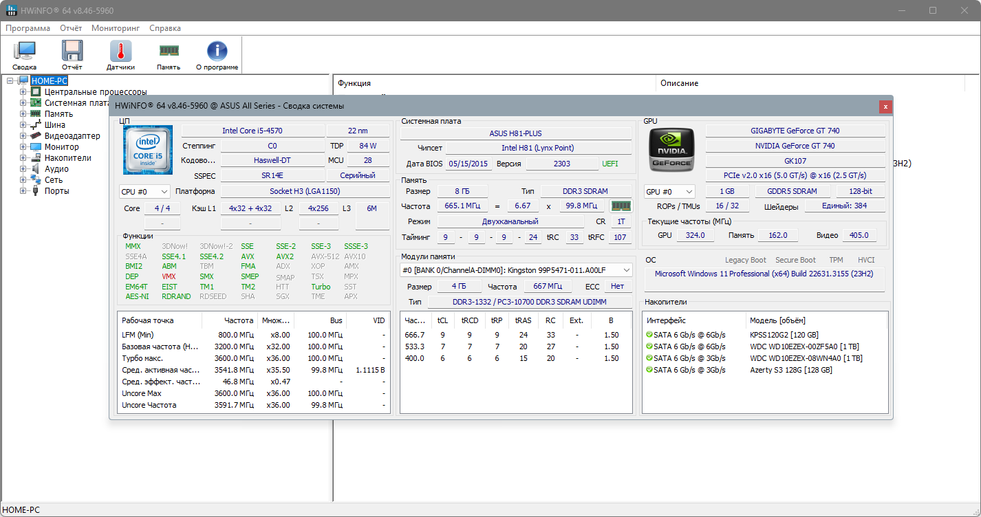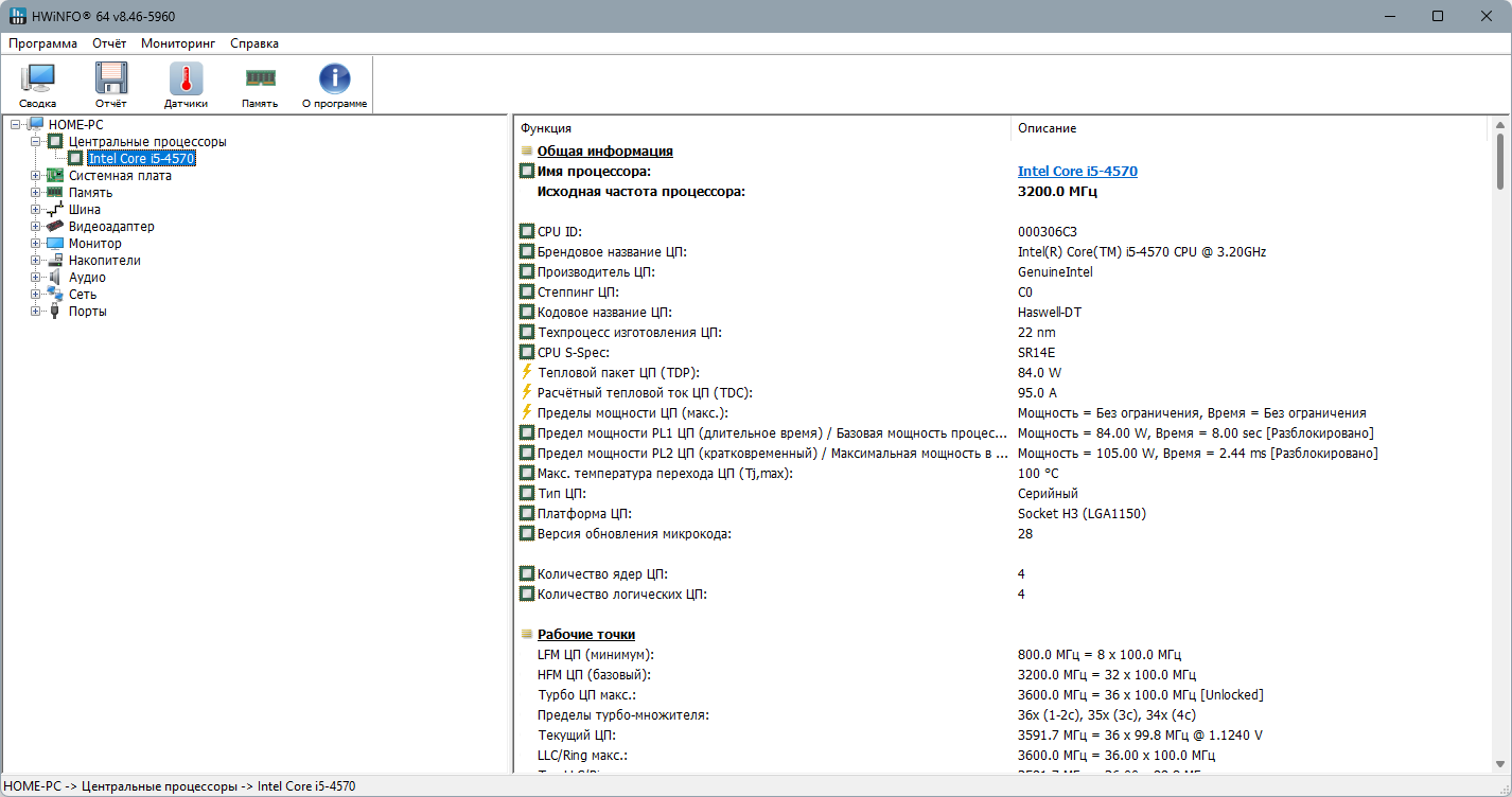 Описание: HWiNFO32/64 - мощный информационный инструмент, который собирает важные данные о состоянии аппаратных частей компьютера, включая процессоры, видеокарты, RAM, жесткие диски, сетевые карты, адаптеры, показания датчиков и т.д.