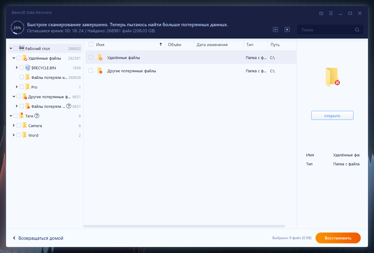 Описание: Профессиональная программа для восстановления данных на ПК, позволяющая быстро находить потерянные файлы.