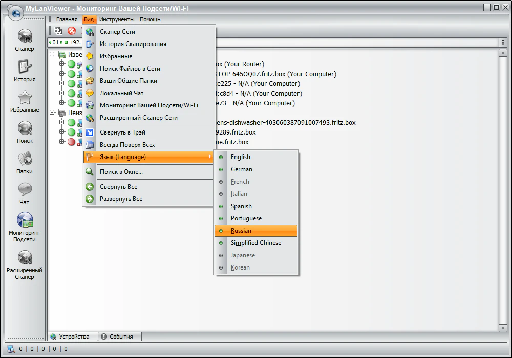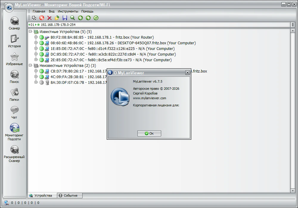 Описание: MyLanViewer — программа для сканирования и мониторинга компьютеров в сети с возможностью поиска общедоступных файлов. Она показывает компьютеры в удобном для просмотра виде, который содержит имя компьютера, IP адрес, MAC адрес, общие ресурсы и другие детали для каждого компьютера. С помощью её вы можете следить за компьютерами в сети и получать оповещение, когда состояние одного из них изменится. Также вы можете управлять своими общими ресурсами, запрещать их и закрывать к ним сессии.