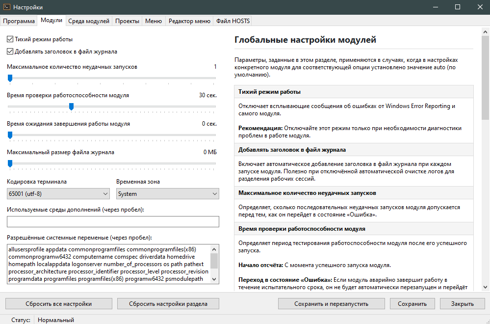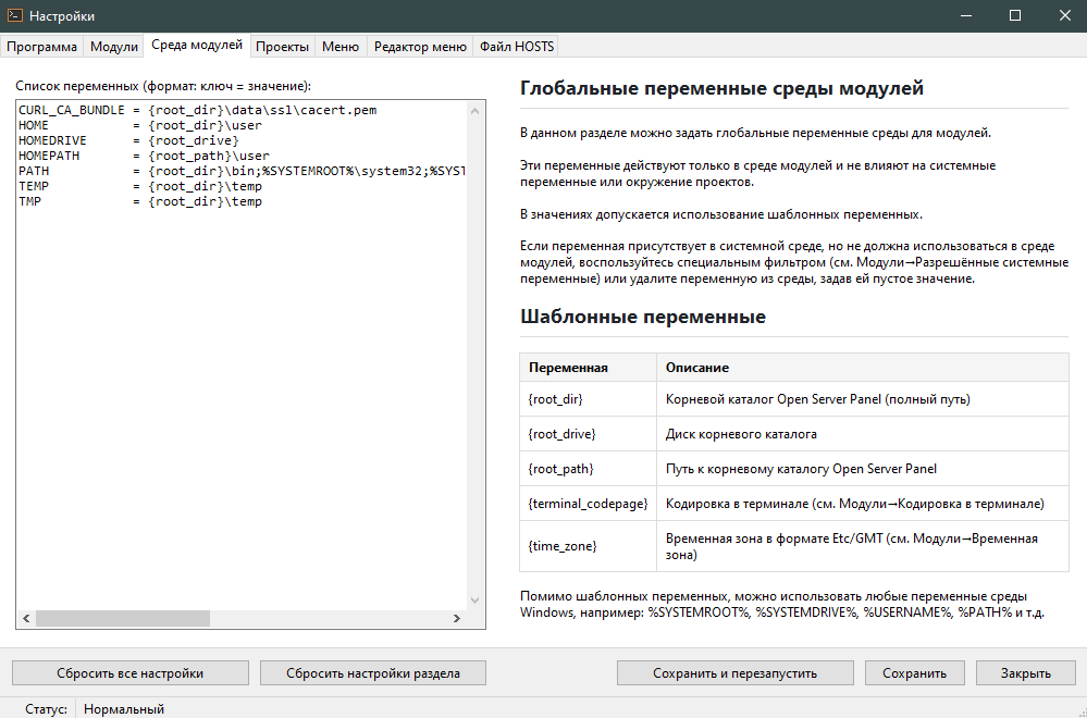 • Иконки каталогов: Использование пользовательских иконок для папок запрещено. Атрибут R для каталога программы и каталогов проектов теперь снимается рекурсивно, чтобы избежать ошибок в работе PHP. • Конфигурация веб-сервера: Теперь конфигурацию веб-сервера можно только дополнять, полная замена больше не поддерживается. • Шаблоны: Шаблоны конфигурации хостов (host_static, host_php, host_proxy), а также пользовательские конфигурационные файлы хостов, теперь обрабатываются парсером шаблонных переменных, как и остальные конфигурационные файлы. • Лимиты по умолчанию: Пересмотрены стандартные лимиты памяти и таймаутов для PHP, Apache, Caddy и Nginx. • Конфигурационные сниппеты: Переработаны сниппеты конфигурации для Apache, Caddy и Nginx. • Обновления компонентов: Все компоненты программного комплекса обновлены до актуальных версий.