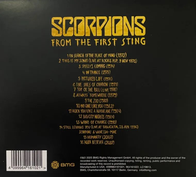 Этот сборник вышел 17 октября 2025 года, и у меня есть как CD-версия, так и эксклюзивный золотой винил на Amazon, который также поставляется с патчем Scorpions. Альбом на виниле состоит из 2 пластинок, в то время как CD - это всего лишь один диск. Сложно уместить песни, написанные за 60 лет, на один диск, который содержит всего 16 треков. Я думаю, что набор из 2 или даже 3 компакт-дисков был бы более подходящим и удачным способом отпраздновать 60-летие. 60 лет, я уже упоминал об этом? Они сделали каверы на несколько отличных песен, и у нас даже есть две ранее не издававшиеся версии пары их песен, так что, по крайней мере, это круто.