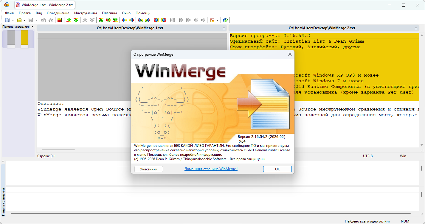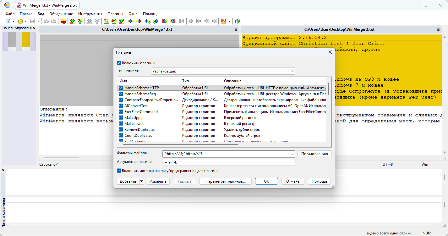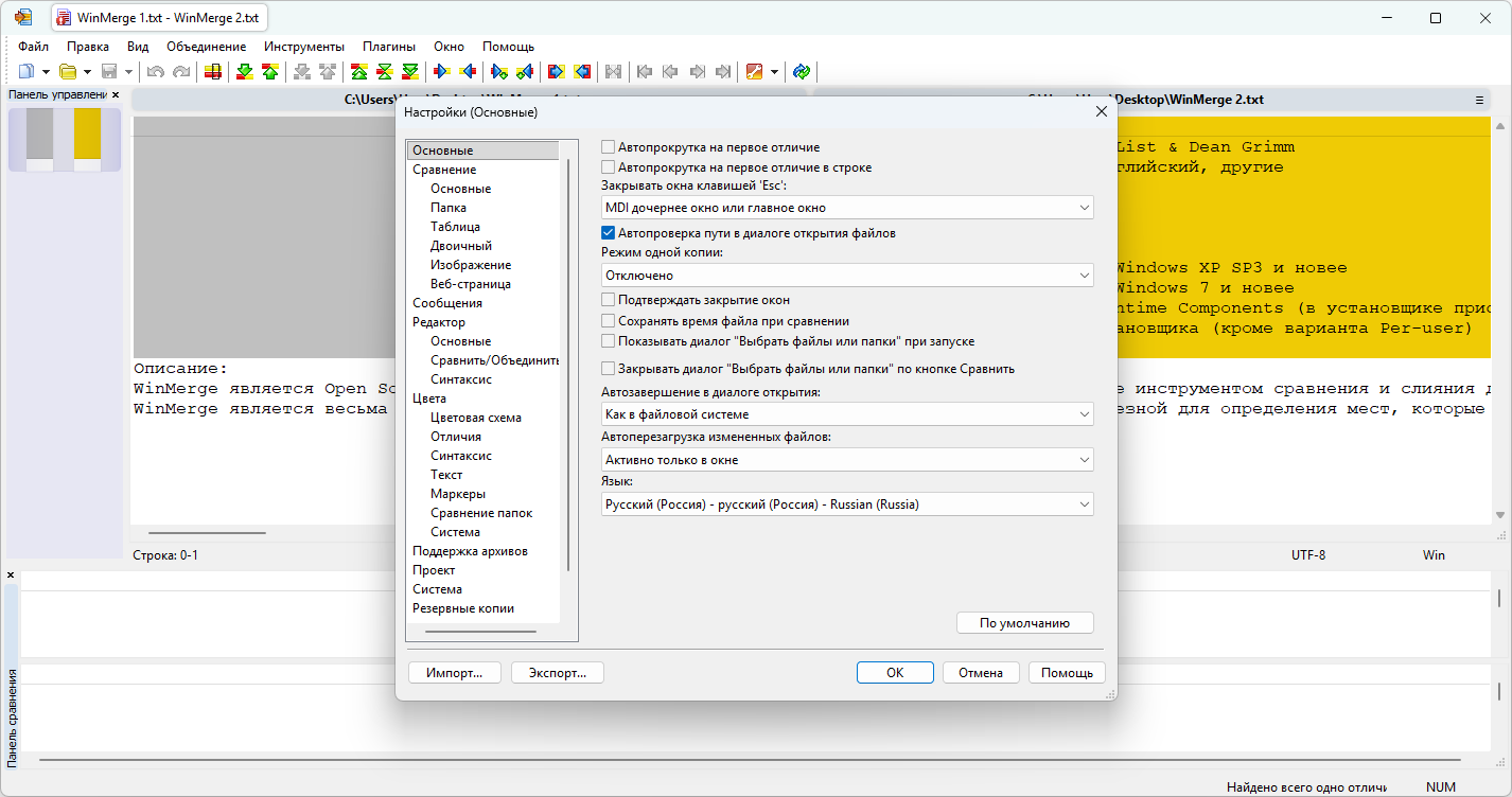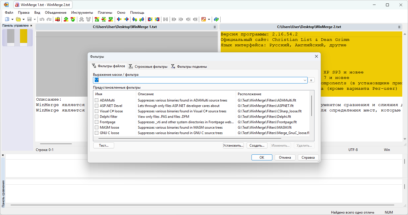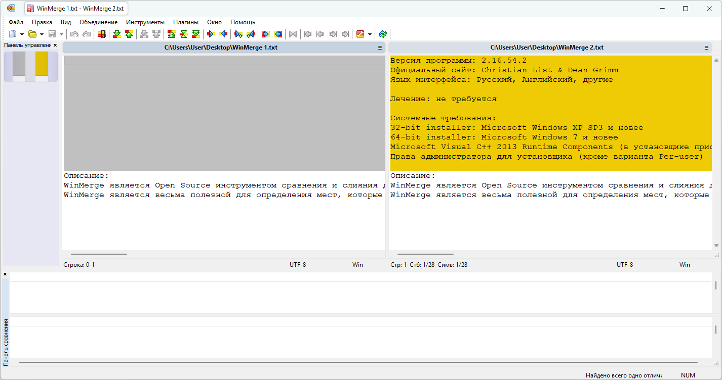 WinMerge имеет множество вспомогательных возможностей, которые делают процесс сравнения,