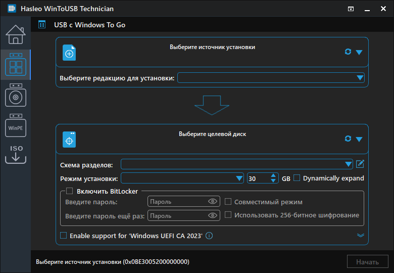 Описание: WinToUSB - позволяет устанавливать и запускать операционную систему Windows с USB-HDD или USB-Flash, используя образ ISO или CD/DVD диск в качестве источника установки. WinToUSB также поддерживает создание загрузочного WinPE USB, он может помочь вам перенести содержимое WinPE на диск USB и сделать накопитель загрузочным.