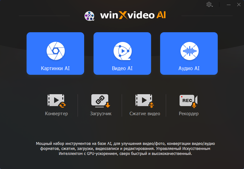 Описание: Winxvideo AI - это набор инструментов для масштабирования, редактирования и улучшения ваших видео. Программа использует искусственный интеллект для повышения качества и скорости преобразования, редактирования и сжатия видео. Поддерживает широкий спектр входных и выходных форматов, включая 4K, 8K, HEVC, AV1, MP4, MKV, MOV и другие.