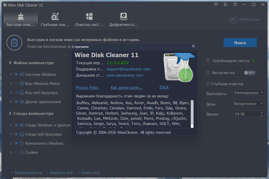 Версия программы: 11.3.2.852 Официальный сайт: WiseCleaner Язык интерфейса: Русский, Английский и другие Лечение: не требуется Размер архива: 30.5 mb